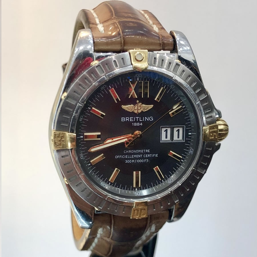 - Diámetro: 41 mm sin contar la corona. Corona original chapada Breitling.